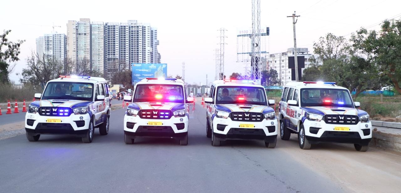 Launch of 4 brand new Scorpio vehicles for Patrolling for the fast developing areas of Cyberabad Zone by Stephen Raveendra…